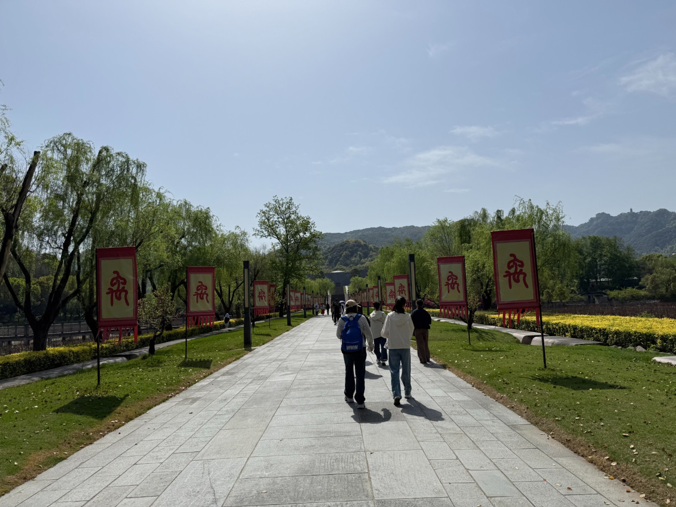 从大门进去后,可以看到一个喷泉。在这里可以看到一个岔路。如果是想去博物馆,可以右转,如果是要去大禹祠,大禹庙的话可以从后面走。其实我个人觉得完全不用做攻略,大家去哪儿我们去哪儿,哈哈。我们来的时候恰好初春,风景简直太美了。到处都是花儿,难怪诗人们喜欢写春天,春天的鲜艳真的太吸引人了。